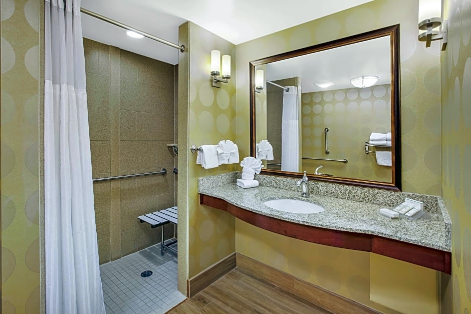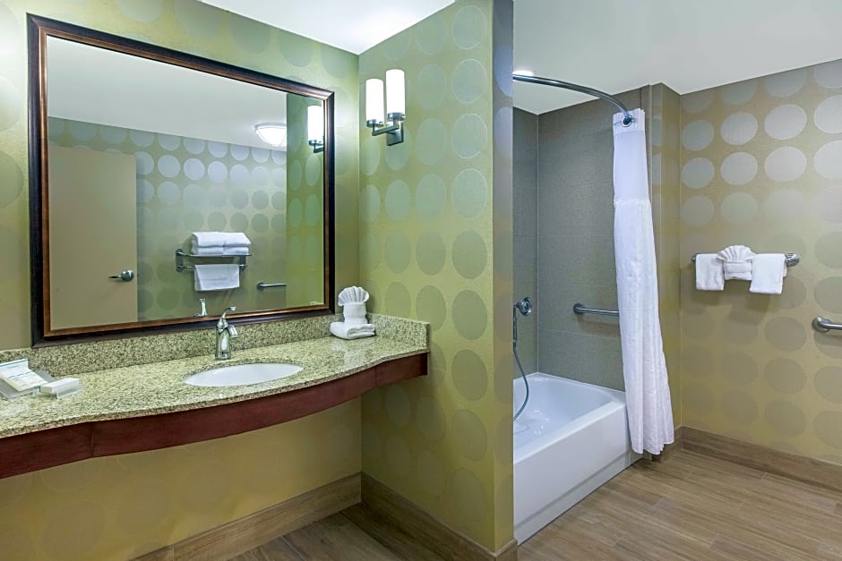 Other amenities at the Hilton Garden Inn include a golf course for an additional charge, a business center for those traveling on business, and a 24-hour front desk for any assistance you may need. The hotel is wheelchair accessible, and the non-smoking rooms ensure a pleasant and clean environment. Rest easy with the provided free toiletries, and enjoy the convenience of having a refrigerator, microwave, and flat-screen TV in your room.